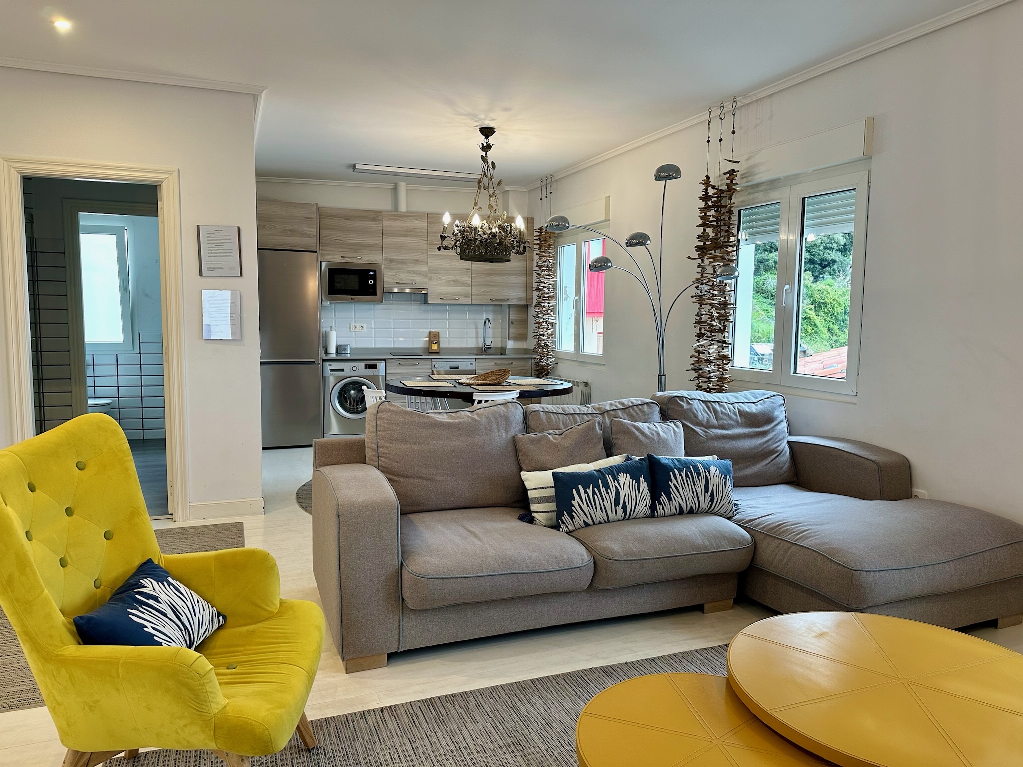 El apartamento dispone de dos dormitorios, un salón-comedor con cocina abierta y baño completo. La luz natural y las vistas al entorno son protagonistas en cada estancia, creando un ambiente cálido, relajado y muy auténtico. Ideal para parejas, familias o viajeros que buscan un lugar con personalidad, bien ubicado y con encanto.